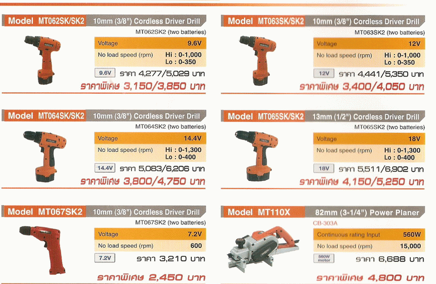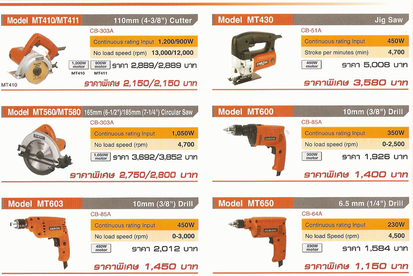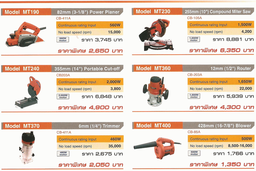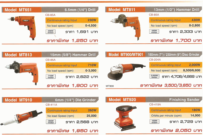 ภาพสินค้ามาจาก แคตตาล๊อคสินค้า ของผู้ผลิตเครื่องมือไฟฟ้า MAKITA และ MAKTEC