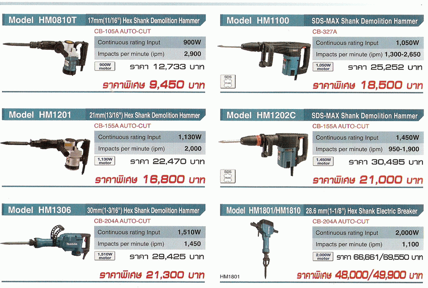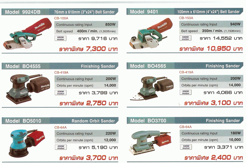 เครื่องมือไฟฟ้า makita มีให้เลือกหลายรุ่น กรุณาโทรสอบถาม เพราะมีบางรุ่น ผู้นำเข้าภายในประเทศ ยังมิได้นำเข้ามาครับ