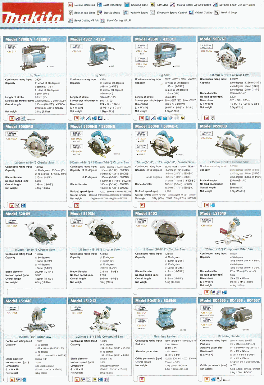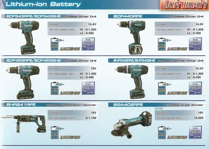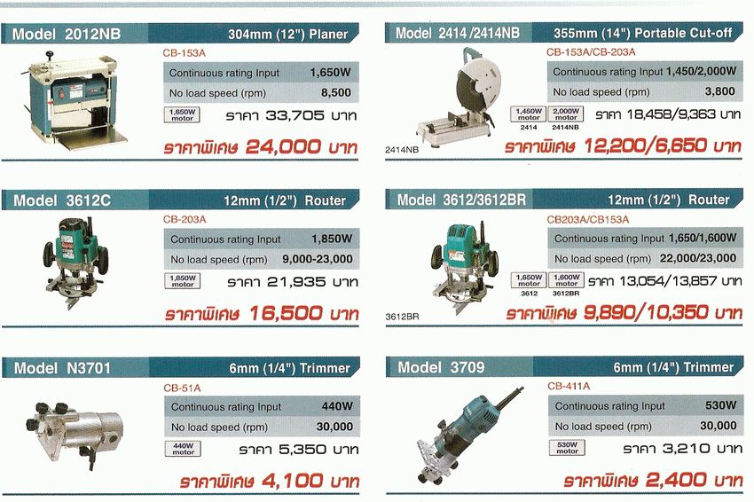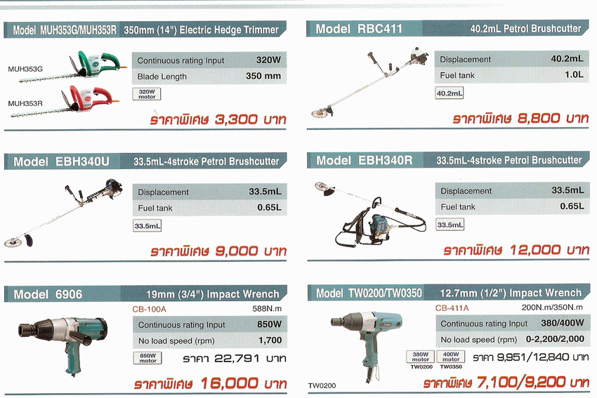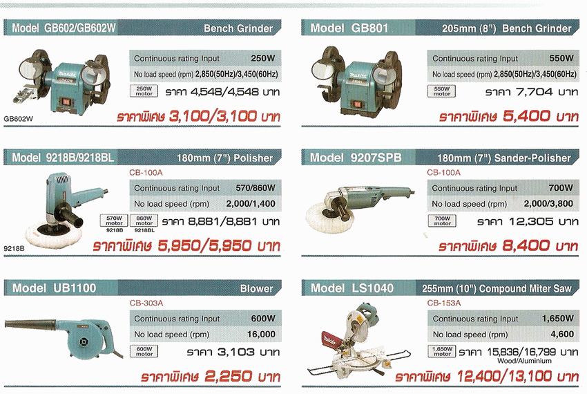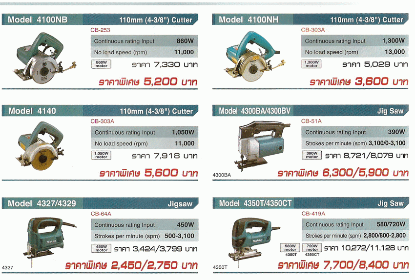 ภาพสินค้ามาจาก แคตตาล๊อคสินค้า ของผู้ผลิตเครื่องมือไฟฟ้า MAKITA และ MAKTEC