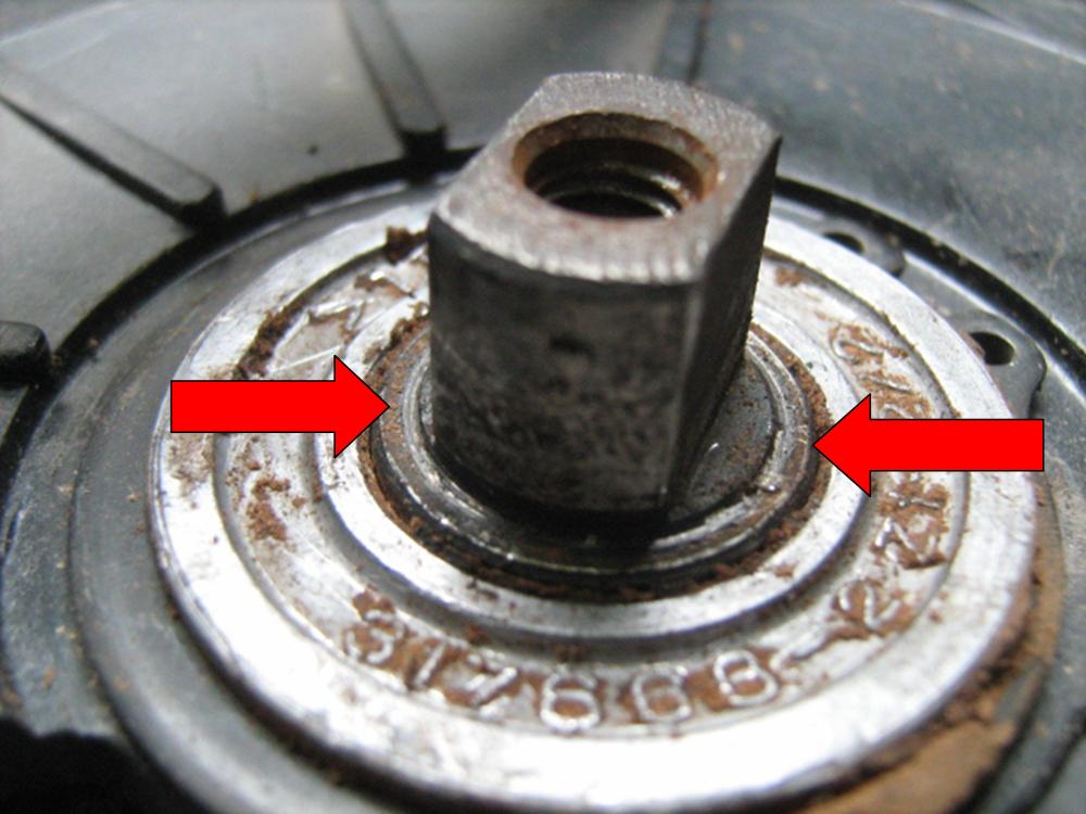 ตรงศรชี้สีแดง มีรอยสึกหรอ เป็นร่องวงกลมโดยรอบ ทำให้ ไม่สามารถขันนอตประกบใบเลื่อยให้แน่นได้เพราะว่า