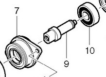 แกนเฟืองตัวนี้ ( อะไหล่หมายเลข 9 ) ต้องเปลี่ยนใหม่ หากเราดูในภาพเขียนสแปร์พาร์ท ของบริษัท เราจะเห็นว่า